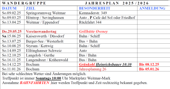 Weitere Infos gibt euch Wanderwart Schorsch. Kontakt über uebungsbetrieb@tv-jahn-weitmar-1893.de